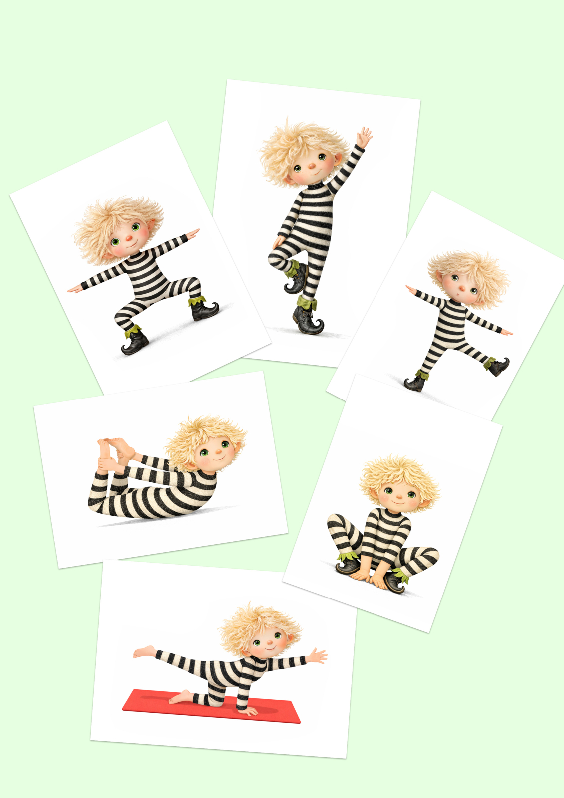 Ez a mappa 30 különböző mozgásforma, testhelyzet illusztrációját tartalmazza, A4-es méretben. Mozgássorozatok kirakására alkalmas, amelyeket a gyerekek uánozhatnak. Felnőtt által irányítva használható, de a gyerekek együtt, magukra is használhatják.