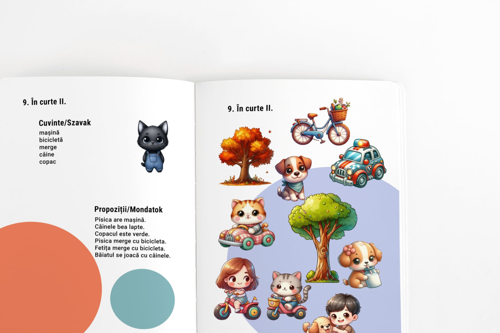 A „Tanulj a cicussal!- Pontról pontra megtanulok románul” egyedülálló, óvodások számára készült nyelvtanító könyv, amely lépésről lépésre vezeti be a gyerekeket a román nyelv alapjaiba. A kiadvány a hivatalos tanterv szempontjait követi, és kifejezetten magyar anyanyelvű gyermekek számára készült. A sorozat első kötete a kiscsoportos korosztály számára készült, játékos, színes illusztrációkkal és könnyen követhető tanulási lépésekkel. A könyv nemcsak tartalmában, hanem vizuális megjelenésében is egyedi, mivel minden illusztráció és oldalelrendezés a szerző saját munkája, melyet 25 éves pedagógusi tapasztalat előz meg. Célja, hogy a gyerekek természetesen, élményszerűen sajátítsák el a román nyelv alapjait, és magabiztosan lépjenek az iskolai nyelvtanulás szintjére. A4-es mért, 88 oldal.
